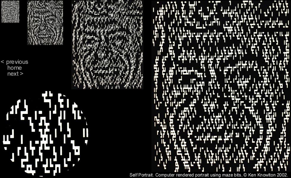 Ken Knowlton, Self Portrait, made of maze bits, Ken Knowlton, Portrait Artist, Computer Scientist, Computer Assisted Art, Knowlton Mosaics